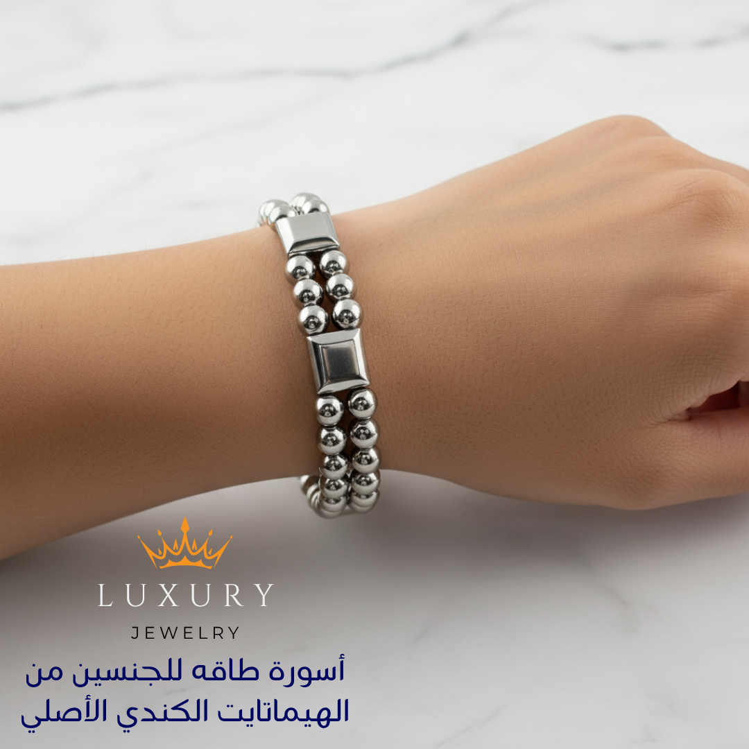 أسورة طاقه طبقتين من الهيماتايت الطبيعي ، للرجال ، للنساء، هدية قيمة ، مجوهرات يدوية فاخرة - كود 9099
