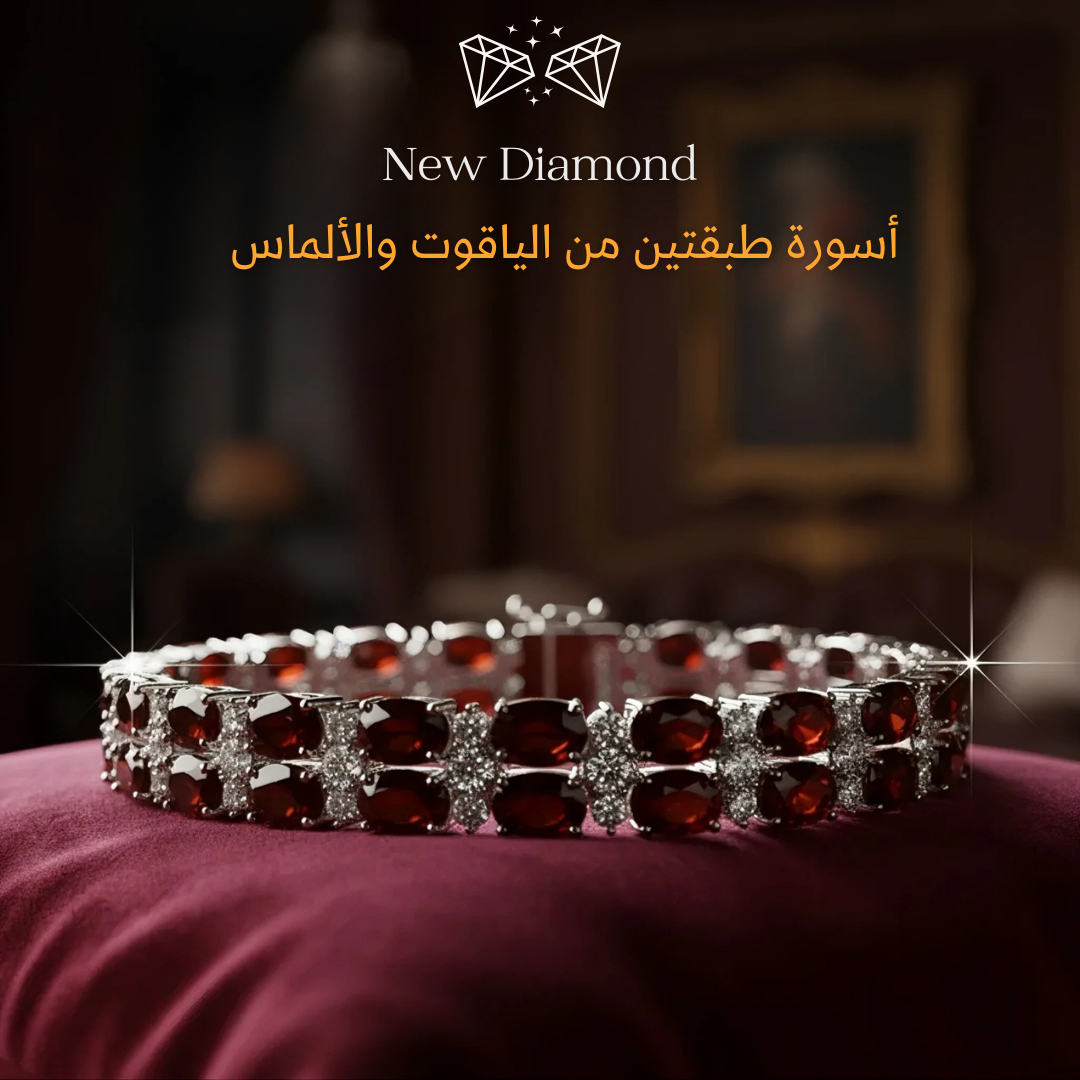 أسورة طبقتين من الياقوت الأصلي مع الماس الحر - كود 2399