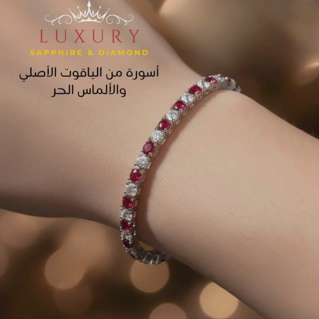 الأسورة من الياقوت مقاس 3 مل مع الماس الحر أو الماس الموزانايت مقاس 3 مل .. والمعدن من الفضه عيار 925 المطليه بالبلاتين