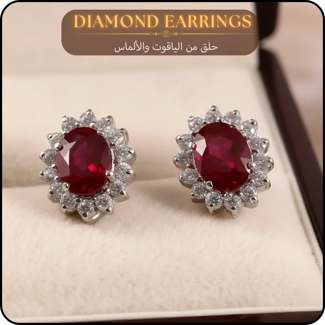 حلق ألماس وياقوت أحمر مع فضة استرليني ،هدية للنساء ، مجوهرات يدوية - كود 894
