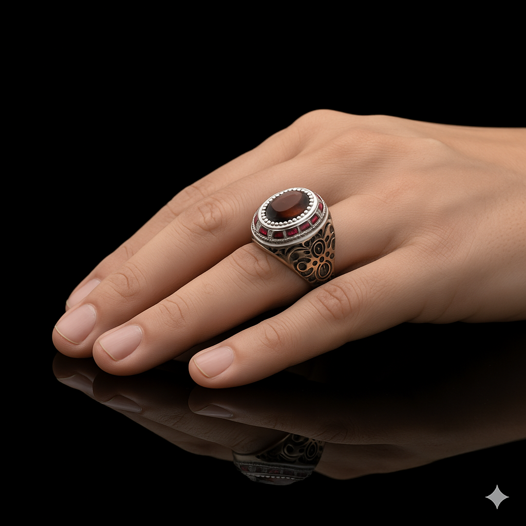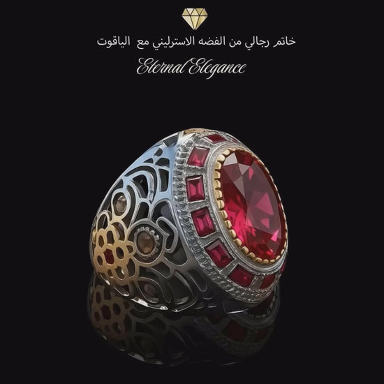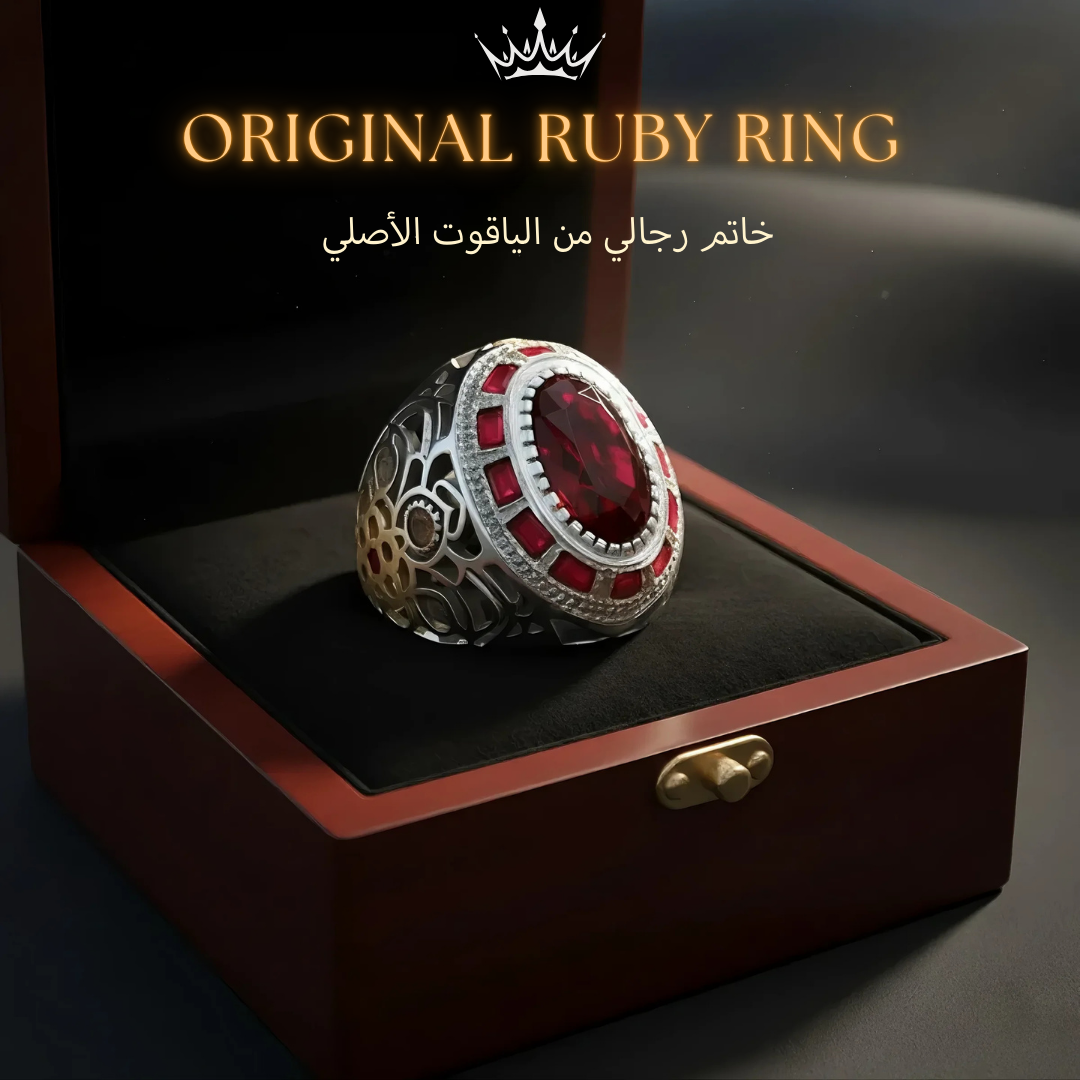 خاتم بتصميم فريد من نوعه موجه لنوعيه خاصة من العملاء الذين يعشقون الفخامه .. يجمع بين الفضه المطليه بالذهب الأبيض مع الياقوت الأصلي ..
