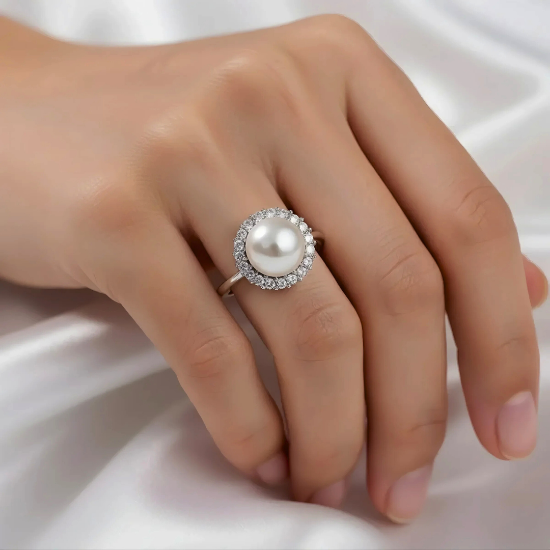 خاتم مرصع بالالماس مع لؤلؤ طبيعي ، هدية فاخرة للنساء، مجوهرات راقية- كود 977