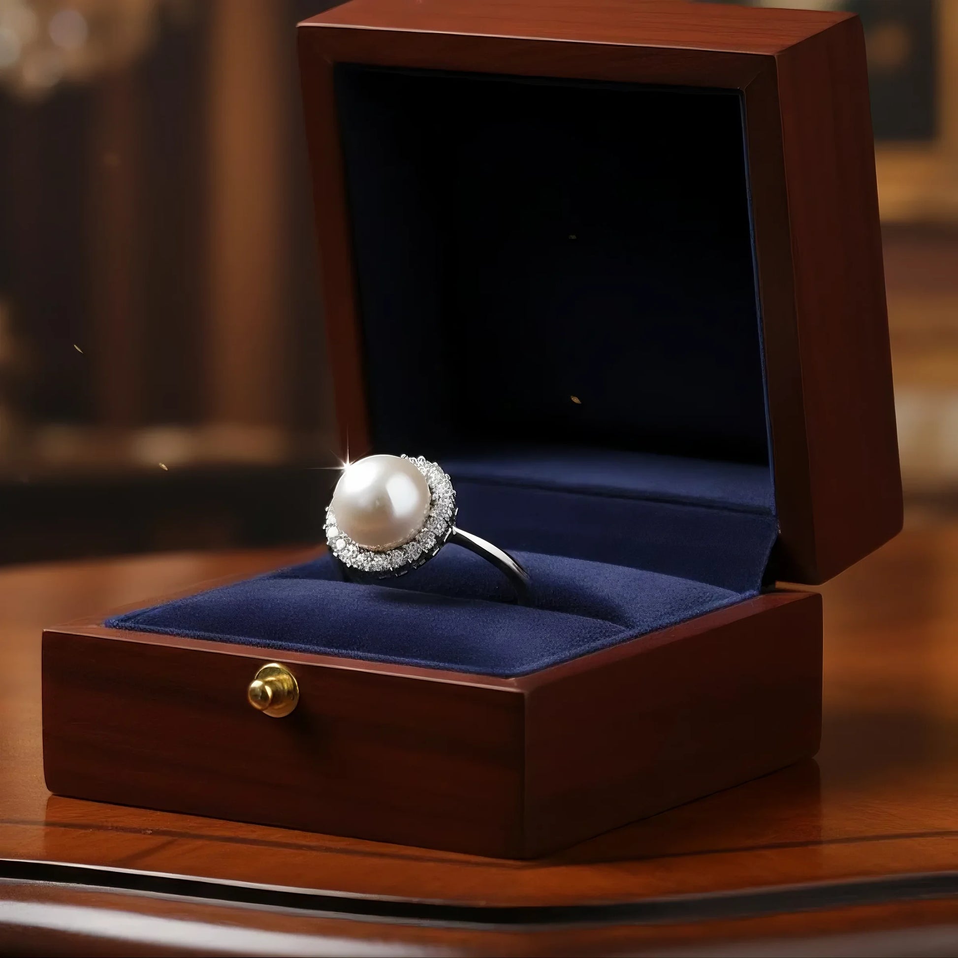 في قلب هذا الخاتم، يتربع اللؤلؤ الطبيعي الفاخر، بتصنيف Triple AAA، والذي يتميز ببياضه النادر وبريقه الملكي.