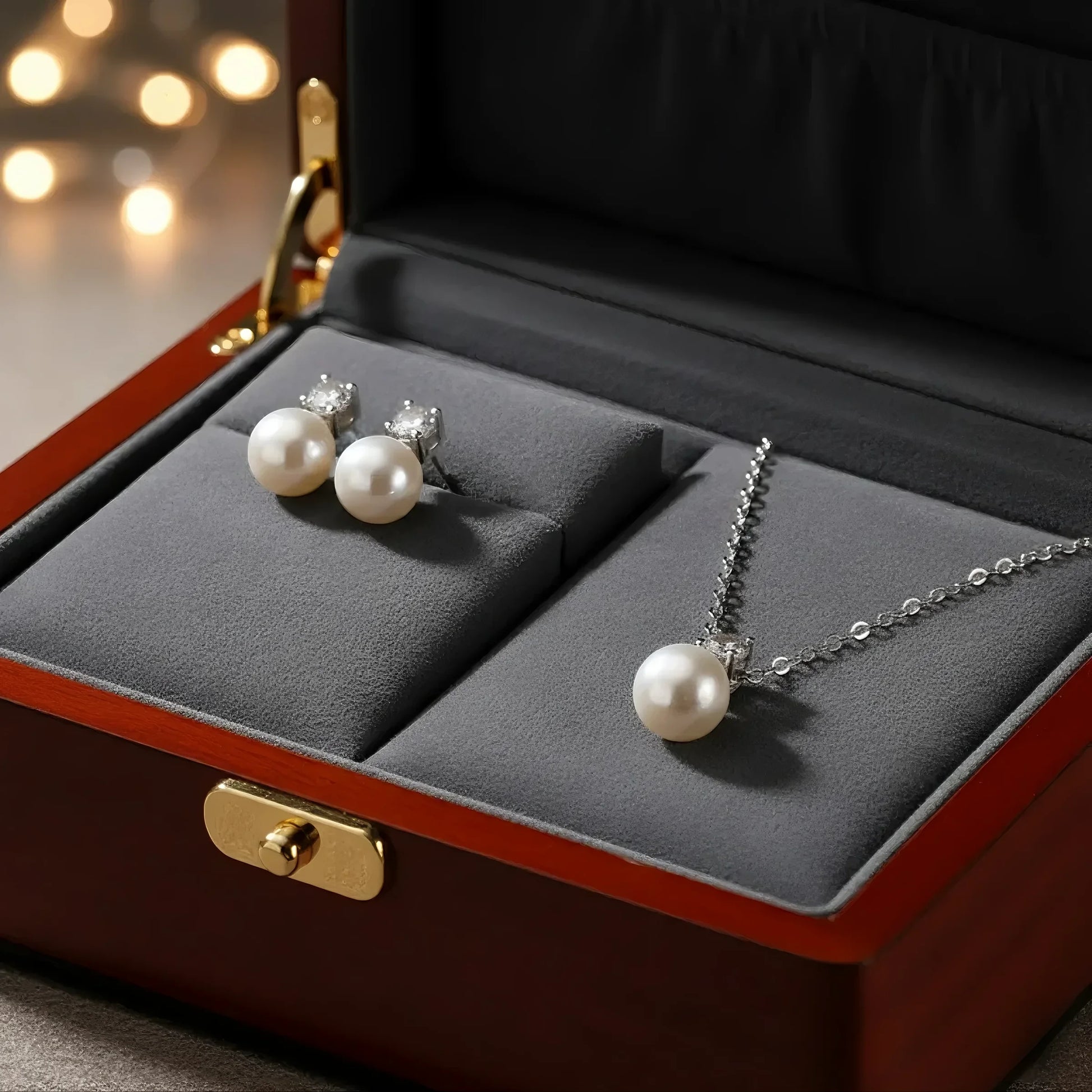 سيصل إليكِ هذا الطقم في علبة فاخرة وراقية، مصممة خصيصًا لحمايته أثناء الشحن ولإضافة لمسة من الفخامة عند استلامها ، العلبة مميزه بتفاصيل أنيقة، مما يجعله مثاليه كهدية. العلبة تحافظ على سلامة السلسله مما يضمن لكِ تجربة استلام رائعة.