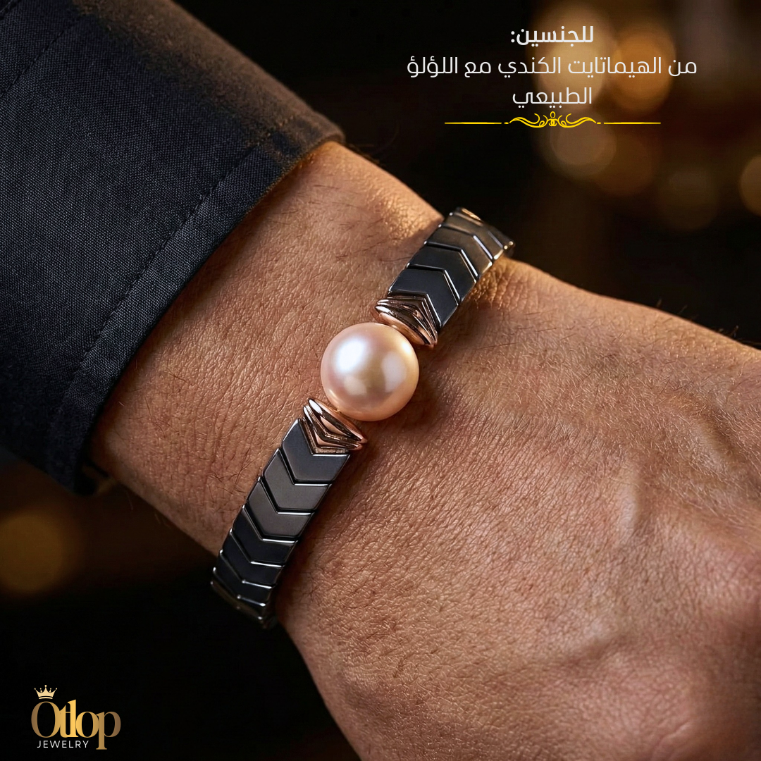 للجنسين من أرقى وأفضل أنواع الهيماتايت الطبيعي الكندي مع اللؤلؤ الطبيعي أو مع الأحجار الكريمه. بجانب روعة التصميم فالهيماتايت من العناصر الطبيعية المفيده جدا للجسم