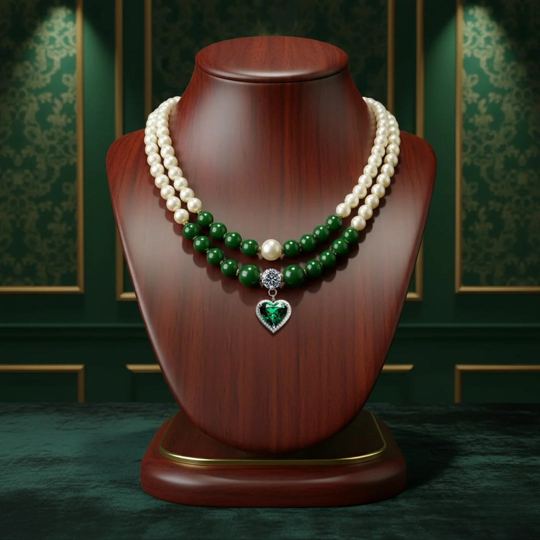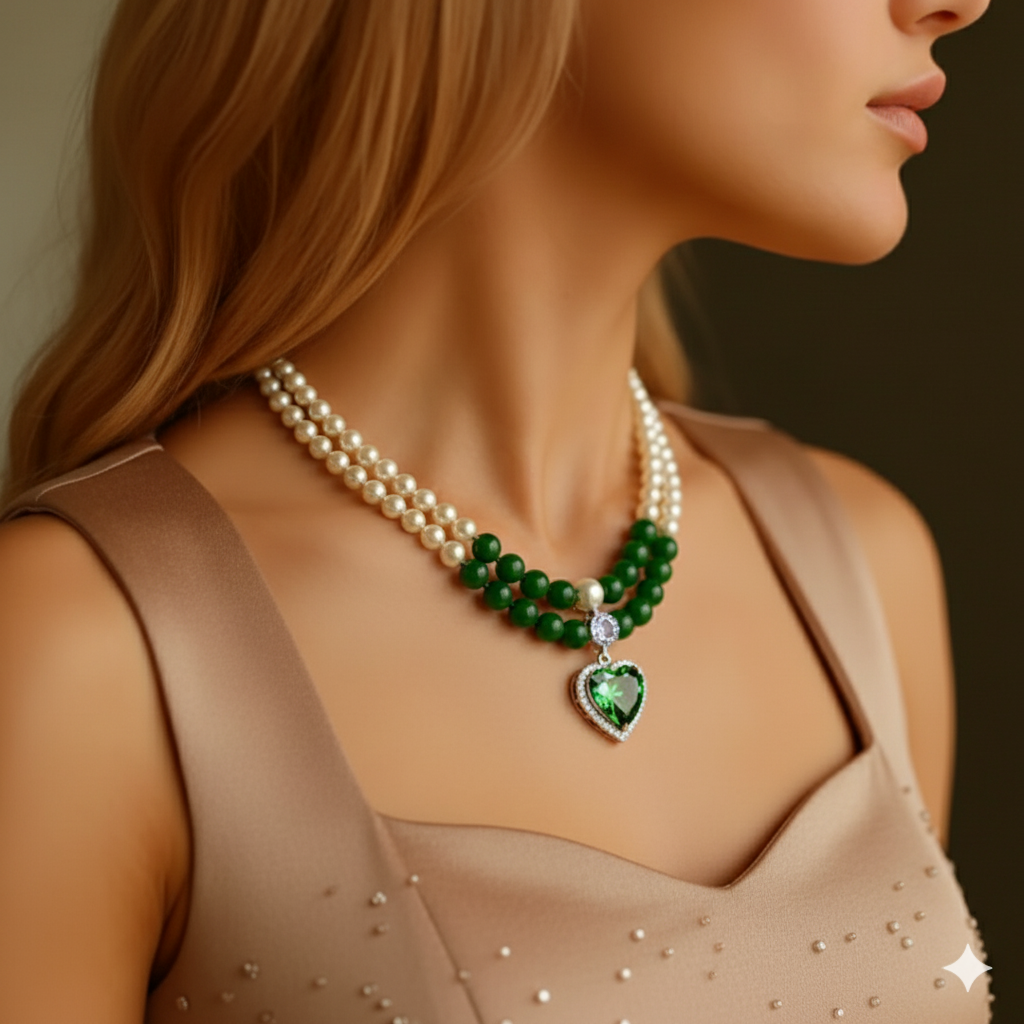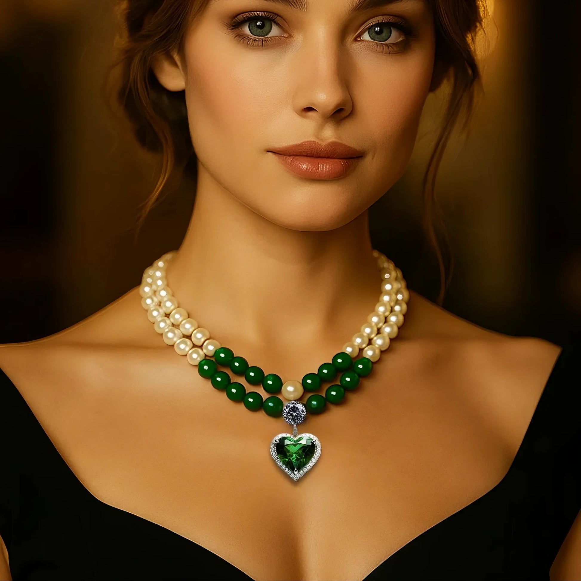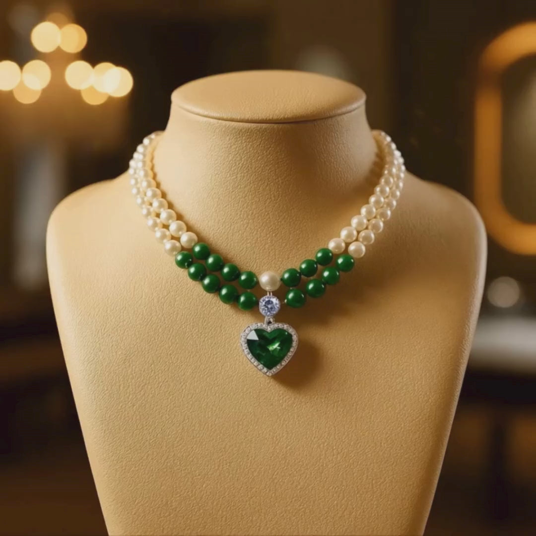 عقد من اللؤلؤ الطبيعي مع حجر الجاد الأخضر الأصلي مع بندانت على شكل قلب - كود 503