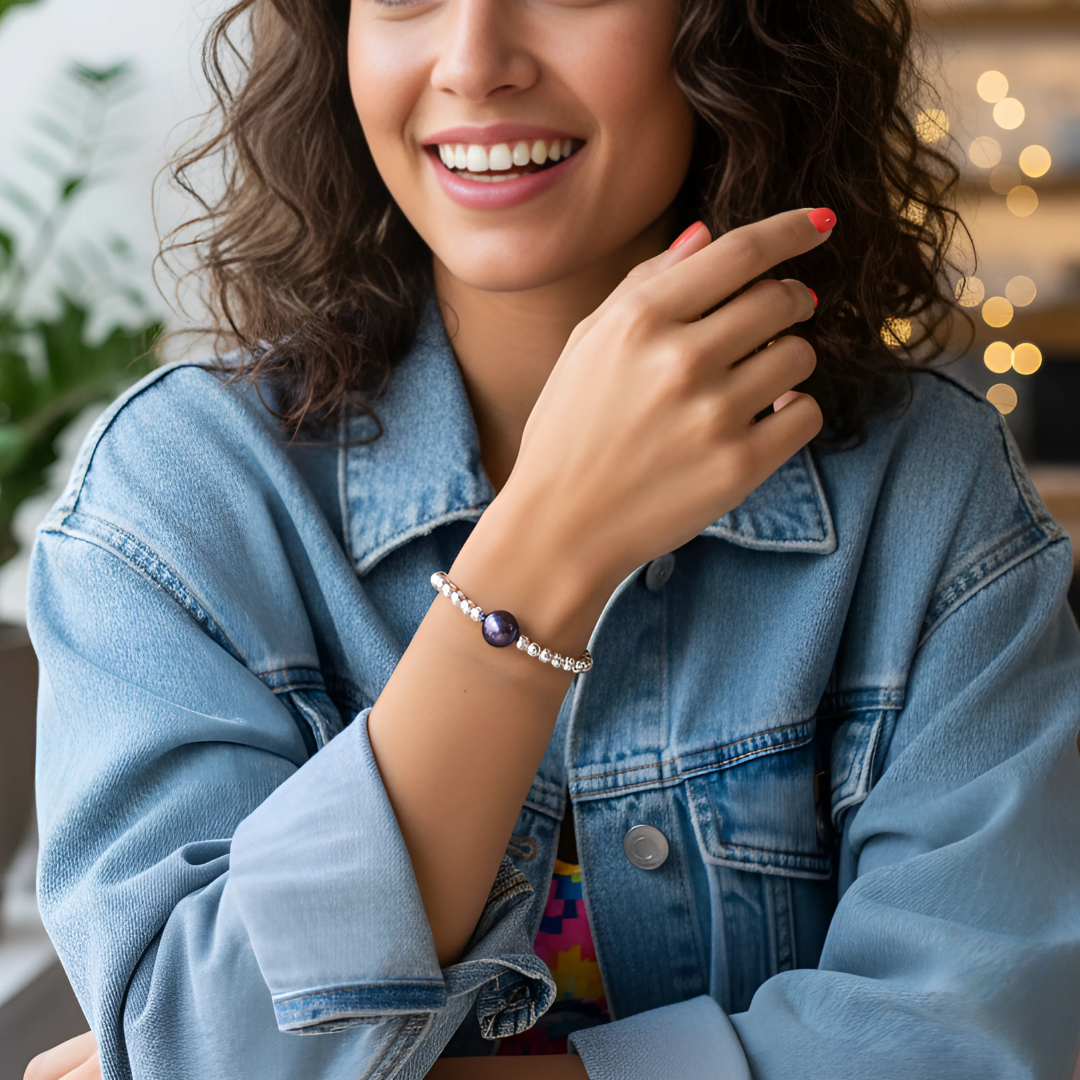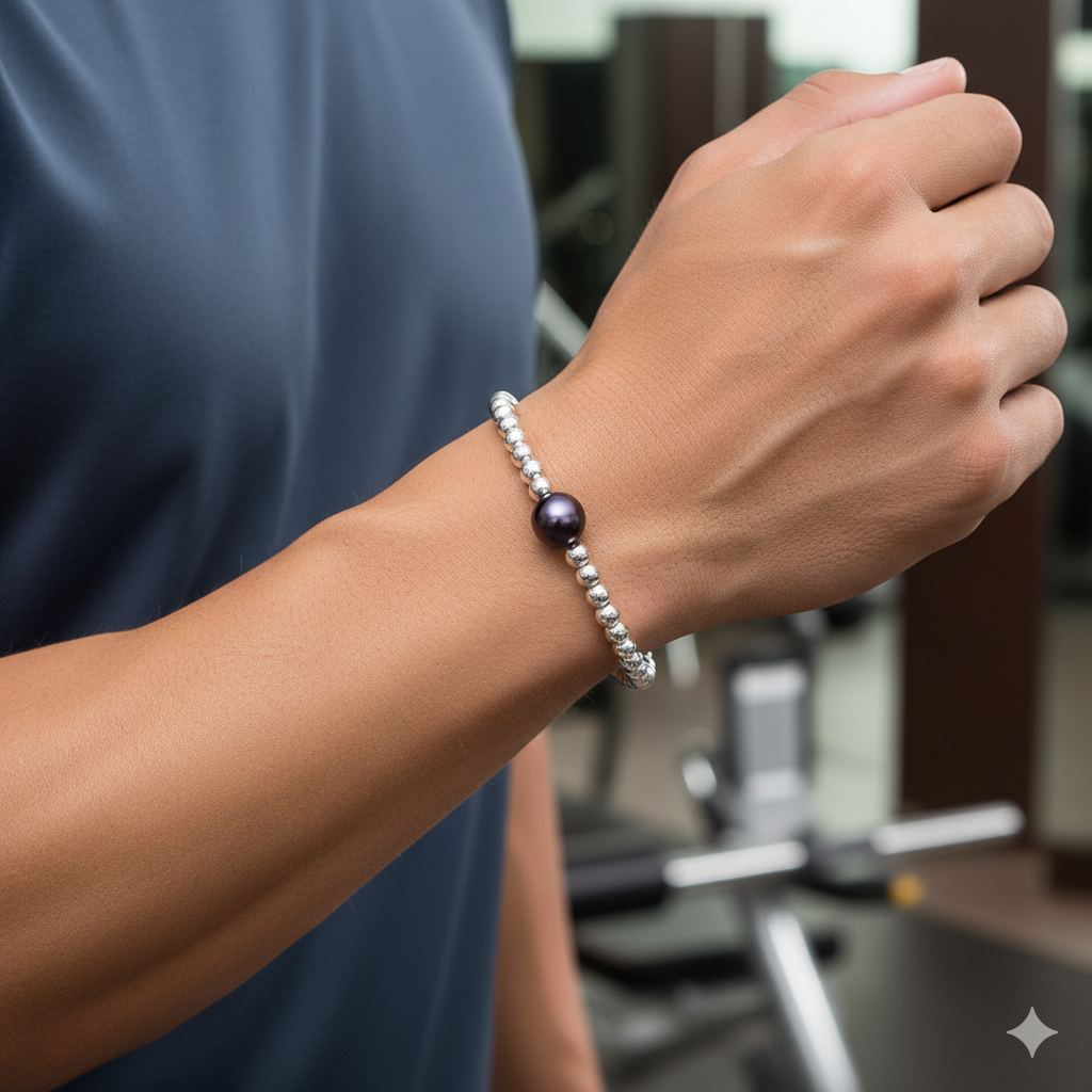 أسورة أنيقة تجمع بين الهماتيت الطبيعي ذو اللمعان المميز تتوسطها لؤلؤة طبيعية باللون الأسود ما يجعلها قطعة مثالية لكل من يحب التميز والشياكة. تصميمها العصري .يجعلها ملائمة للرجال والنساء على حد سواء، مما يضفي لمسة فاخرة وجميلة على أي إطلالة.